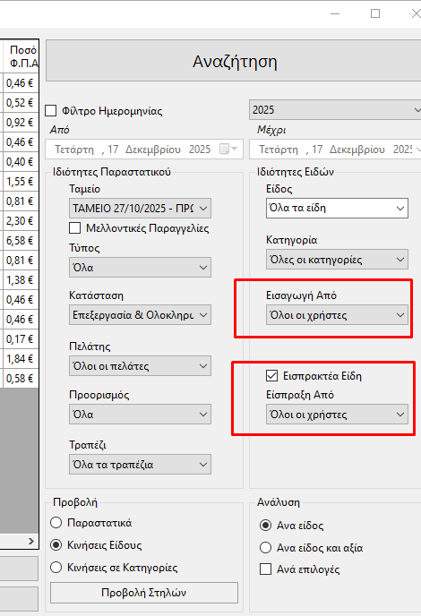 έλεγχο για το ποιος χρήστης καταχώρησε τα παραστατικά και ποιος το εισέπραξε