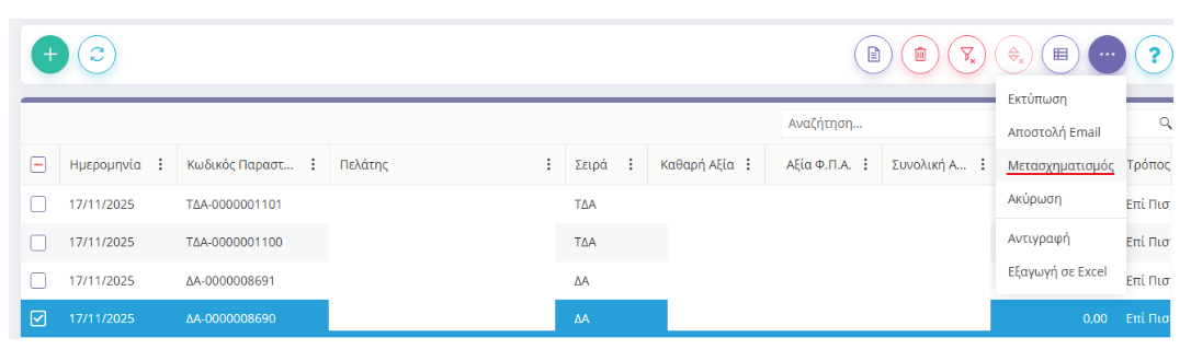 Τα Δελτία Αποστολής μπορούν να μετασχηματιστούν σε τιμολόγια πώλησης/ΤΔΑ.